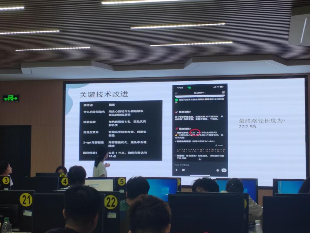 本屆比賽主題是鼓勵學(xué)生在AI工具的輔助下,靈活運用算法和編程語言來解決大學(xué)校園外賣配送路徑優(yōu)化問題。參賽的22級工商管理專業(yè)學(xué)生羅玉銀表示,Z世代大學(xué)生就是要敢想敢做,雖然她之前并沒有上與計算機編程和智能算法相關(guān)的課程,但是通過自學(xué),很快就掌握了相關(guān)知識,并將其應(yīng)用于解決實際問題。