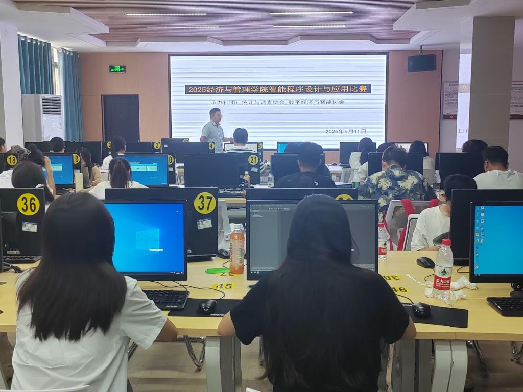 本網(wǎng)消息 經(jīng)濟與管理學(xué)院首屆“智能程序設(shè)計與應(yīng)用比賽”于6月11日下午在X3-102實驗室順利進行。這是近年來經(jīng)管學(xué)院首次舉辦以程序設(shè)計和應(yīng)用為主題的比賽。本屆比賽由統(tǒng)計與調(diào)查協(xié)會和數(shù)字經(jīng)濟與智能協(xié)會承辦,吸引了以工商管理專業(yè)學(xué)生為主的10組團隊共計30余人參加。