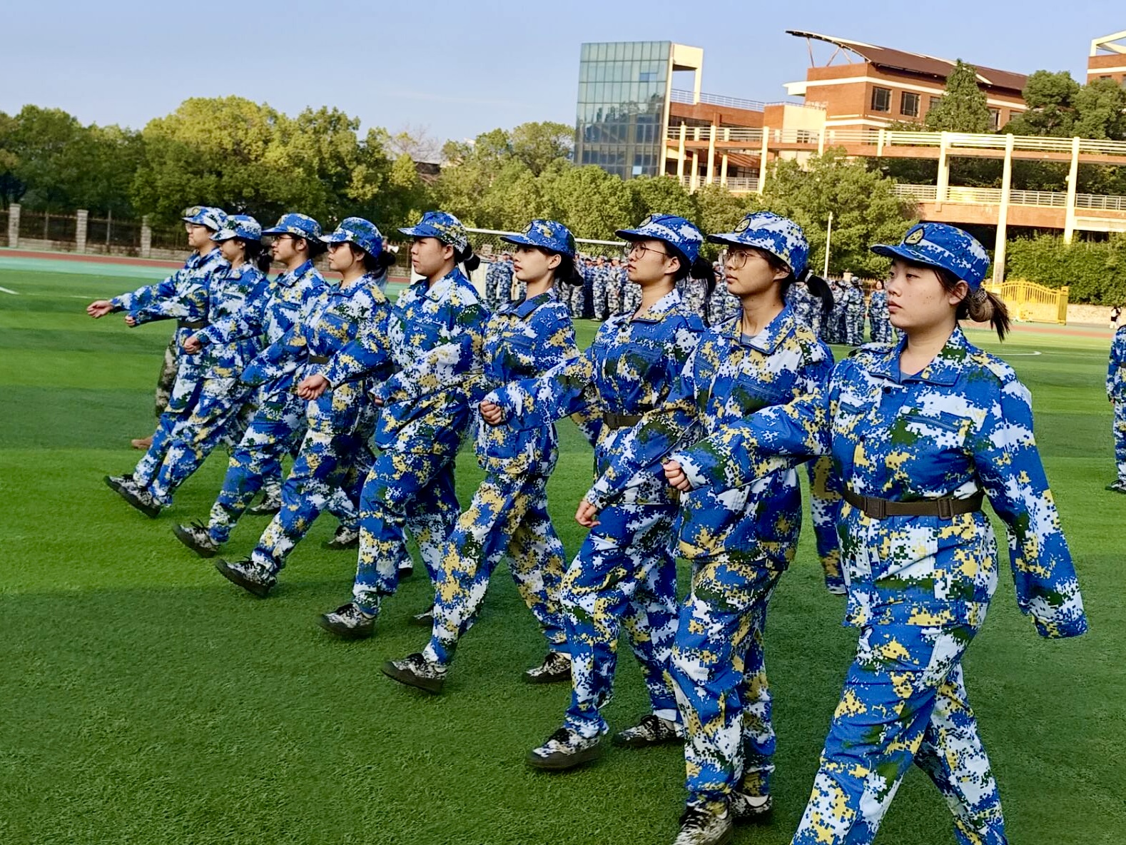 隨著訓(xùn)練深入,課程逐步推進(jìn)至行進(jìn)間動作。敬禮與禮畢訓(xùn)練強化了學(xué)生的紀(jì)律意識;齊步與正步訓(xùn)練則考驗著團(tuán)隊的協(xié)調(diào)配合能力。教官團(tuán)隊采取分解練習(xí)與連貫操作相結(jié)合的方法,嚴(yán)抓動作細(xì)節(jié)。參訓(xùn)學(xué)生在反復(fù)磨合中不斷提升,實現(xiàn)了從個人動作規(guī)范到集體隊列整齊的進(jìn)步,體現(xiàn)了團(tuán)結(jié)協(xié)作的訓(xùn)練成效。