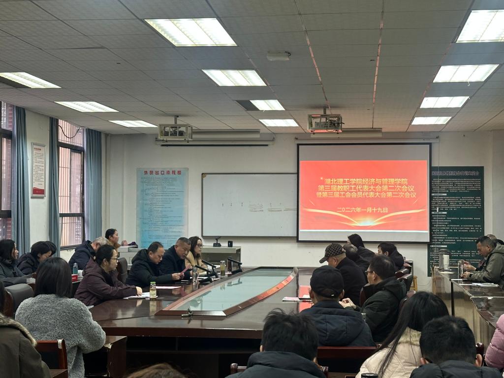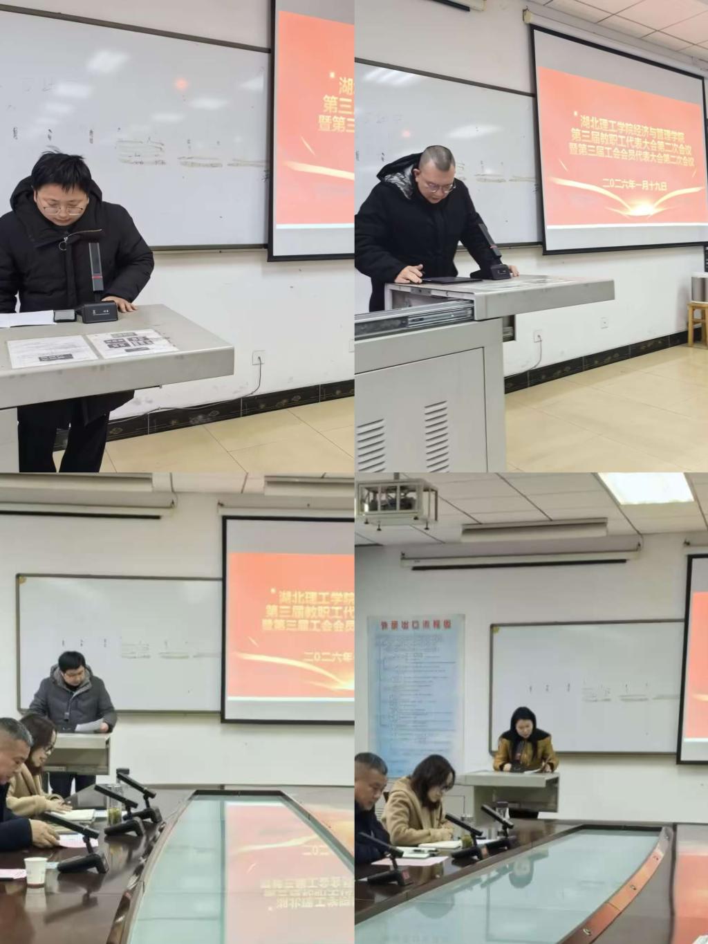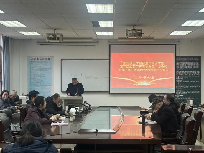 本網(wǎng)消息 總結(jié)年度工作,謀劃未來發(fā)展,1月19日上午,經(jīng)濟與管理學(xué)院在X3-210會議室隆重召開第三屆教職工代表大會暨工會會員代表大會第二次會議。會議全面回顧2025年度工作,科學(xué)謀劃2026年發(fā)展藍圖,聽取并討論各項工作報告和制度提案,凝聚全院共識,匯聚發(fā)展合力。72名代表參加大會,會議由學(xué)院黨總支部書記胡衛(wèi)東主持。