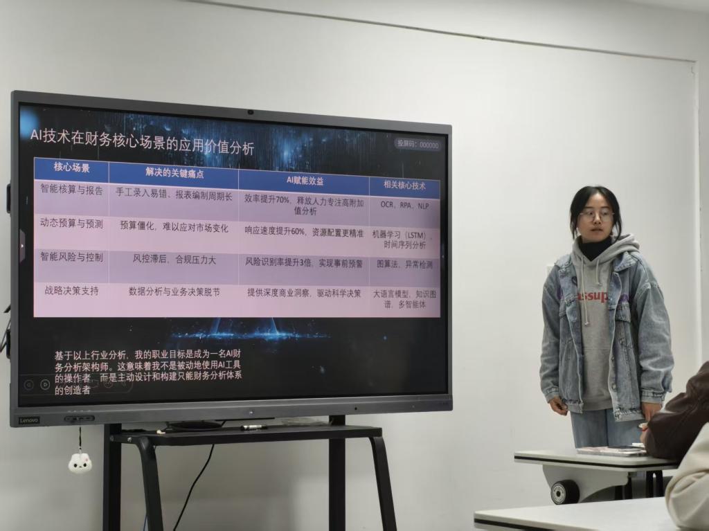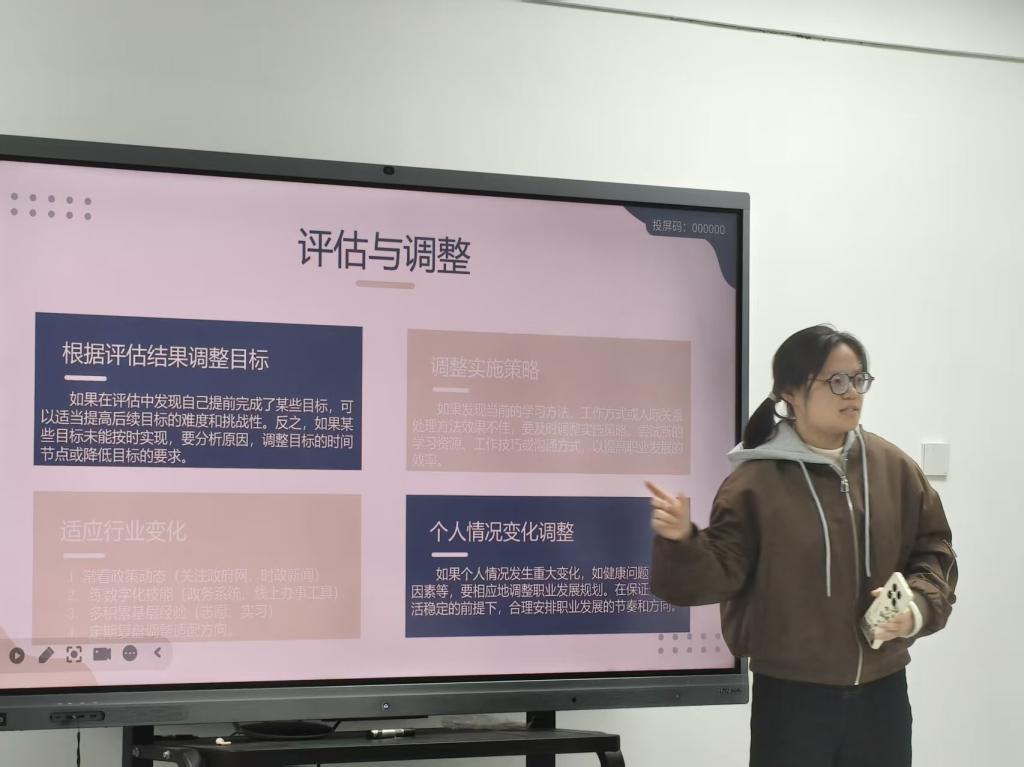 比賽現(xiàn)場,參賽選手圍繞自我認(rèn)知、職業(yè)環(huán)境分析、職業(yè)目標(biāo)設(shè)定、實施計劃及評估調(diào)整等核心內(nèi)容,通過PPT展示與現(xiàn)場闡述的形式,全面呈現(xiàn)個人職業(yè)生涯規(guī)劃藍圖。有的選手結(jié)合專業(yè)特色,聚焦企業(yè)管理、金融投資等領(lǐng)域,構(gòu)建了從校園學(xué)習(xí)到職場進階的完整路徑;有的選手立足行業(yè)發(fā)展趨勢,融入實習(xí)實踐經(jīng)歷,展現(xiàn)了對職業(yè)發(fā)展的深刻思考與務(wù)實規(guī)劃。評委團從規(guī)劃科學(xué)性、可行性、創(chuàng)新性等維度進行專業(yè)點評,既肯定了選手們的精心準(zhǔn)備與清晰思路,也針對性地提出優(yōu)化建議,為學(xué)子們完善規(guī)劃、明晰方向提供了寶貴指導(dǎo)。