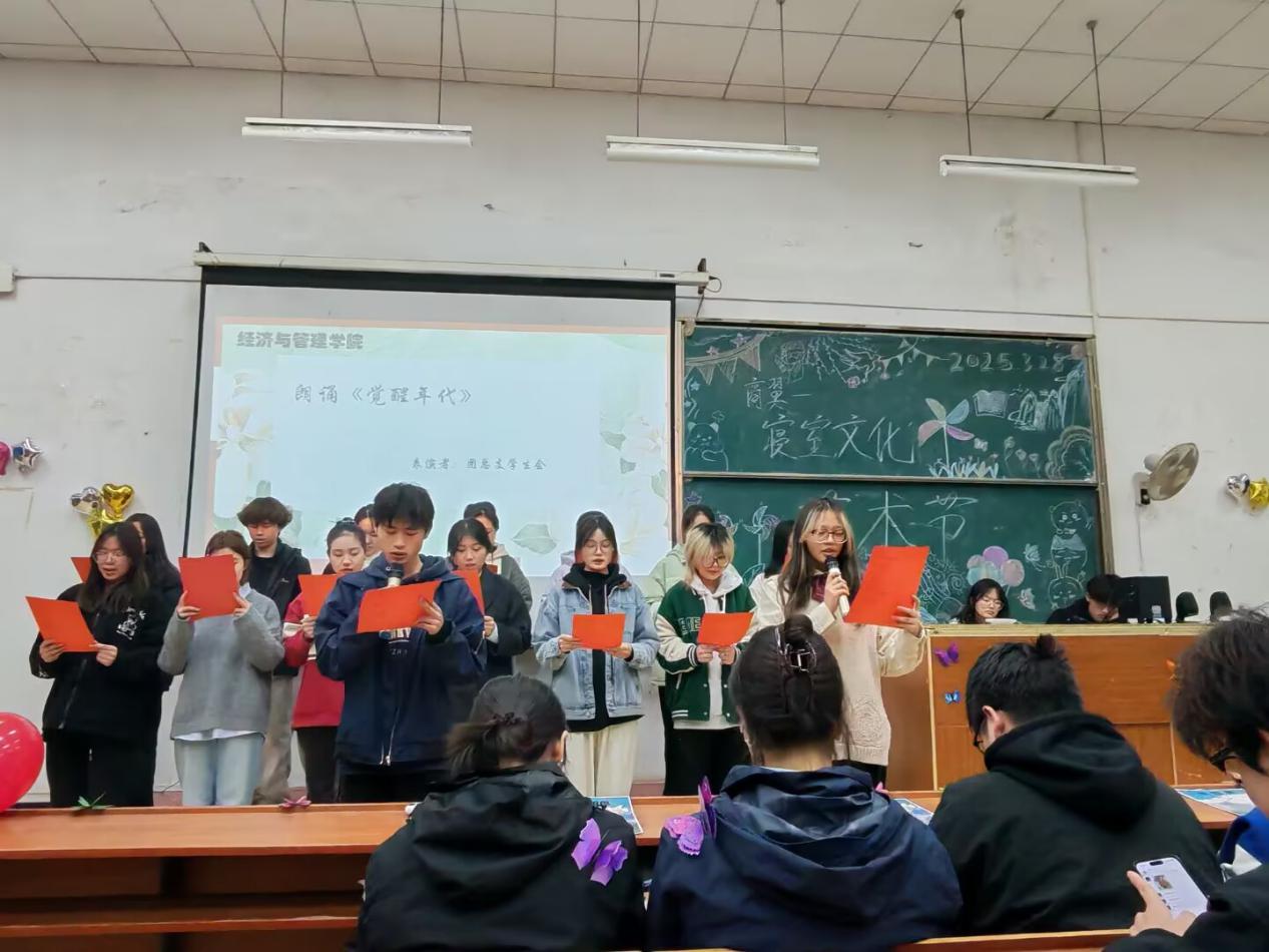 本網(wǎng)消息 為豐富校園文化生活,營造良好的寢室文化氛圍,湖北理工學(xué)院經(jīng)濟(jì)與管理學(xué)院于2025年3月28日晚上七點(diǎn)在X3-304舉辦了第二屆“商·翼”寢室文化藝術(shù)節(jié)。經(jīng)濟(jì)與管理學(xué)院黨總支部副書記蘆鵬出席了此次晚會,輔導(dǎo)員林壯老師,以及經(jīng)濟(jì)與管理學(xué)院部分學(xué)生代表參與了本次晚會。