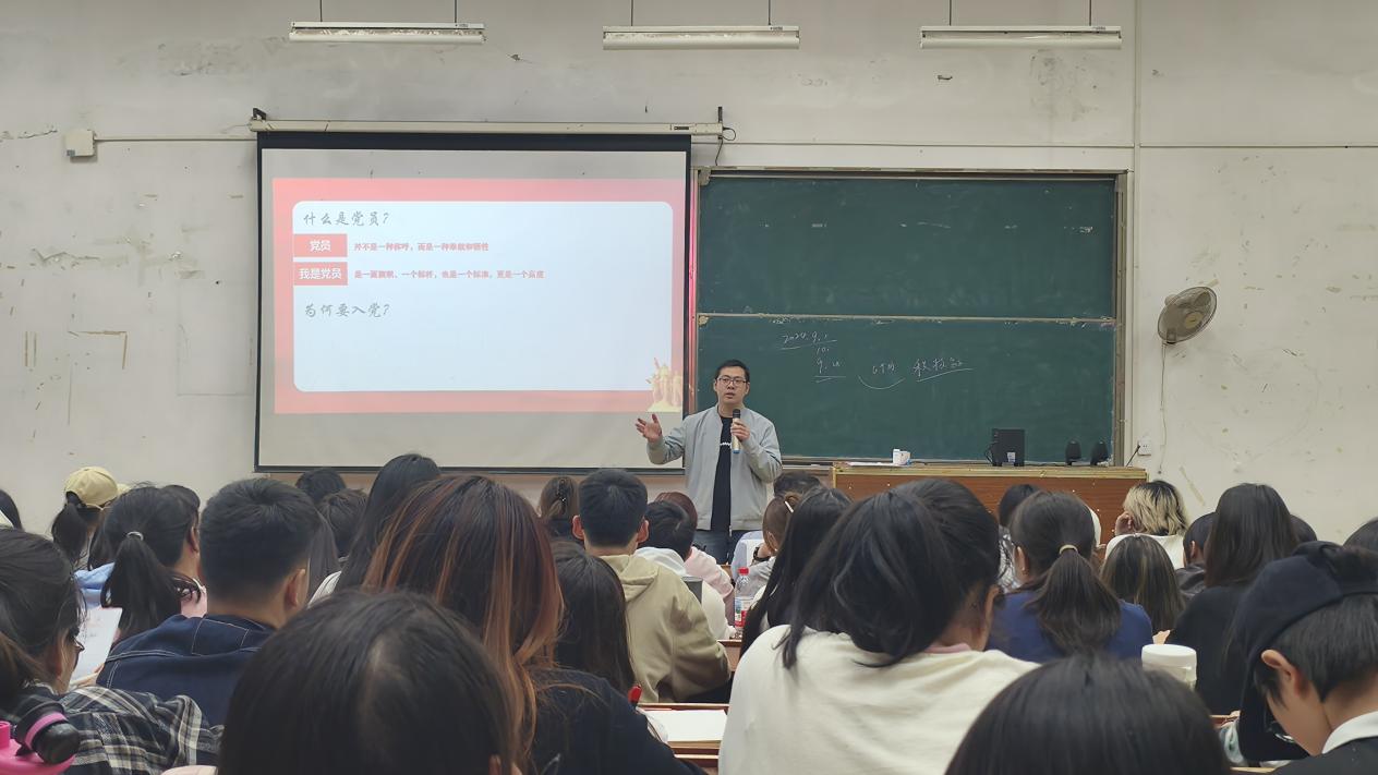 本網(wǎng)消息 4月7日晚,經(jīng)濟與管理學院在X3-304舉辦第38期入黨積極分子集中教育培訓。本次黨課由經(jīng)濟與管理學院團總支書記汪國超同志授課。