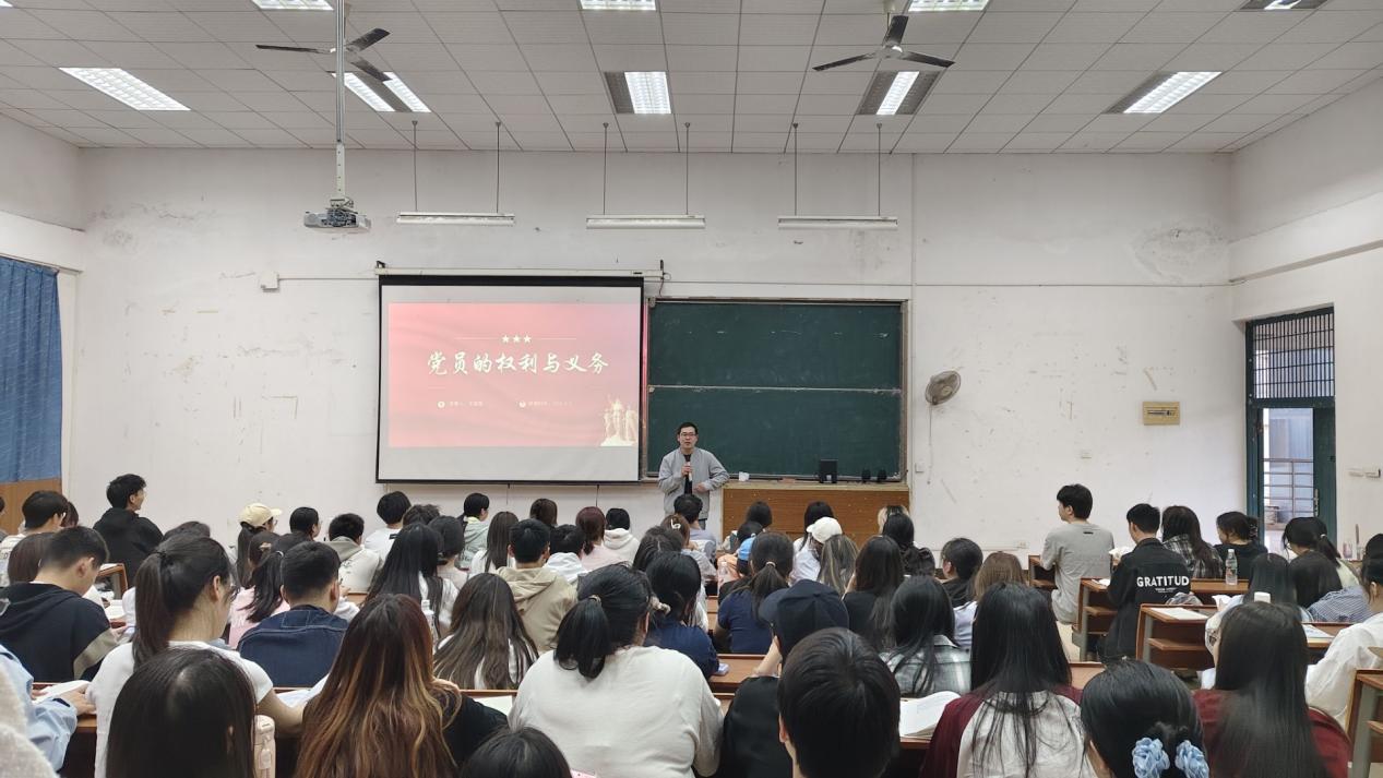 接著,汪國超同志對黨員權利與義務進行了詳細闡釋,他指出,黨員權利不僅是個人參與黨內(nèi)事務的保障,更是推動黨內(nèi)民主建設的重要力量;黨員義務則是每一位黨員對黨和人民應盡的責任,是保持黨的先進性和純潔性的關鍵所在。為了讓理論知識更具針對性和實用性,汪國超同志還結合實際學生案例,分析了在日常工作和生活中,黨員應如何正確行使權利、認真履行義務。